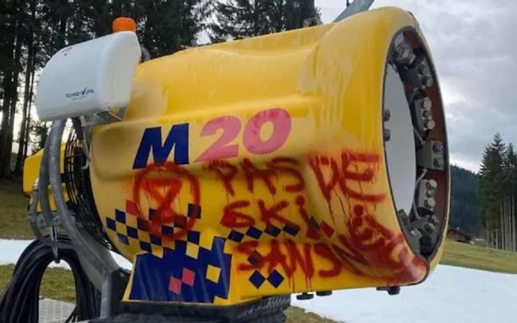 Журналисты отмечают, что активисты не ограничились только погромом дорогостоящего оборудования — на одной из снежных пушек они баллончиком написали "Нет лыжам без снега".