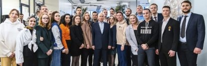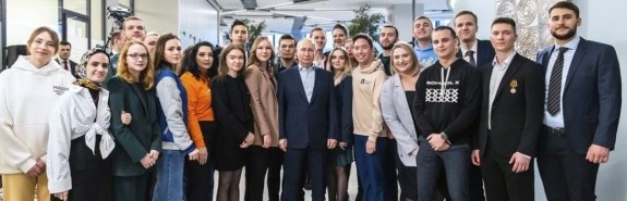 Путин, рост которого, как считается, составляет около 170 см, фотографировался со студентами МГУ им. Ломоносова, который он посетил в Татьянин день.