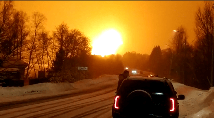 Отмечается, что на месте взрыва образовался высокий яркий огненный столб, который видно на большом расстоянии о места происшествия.