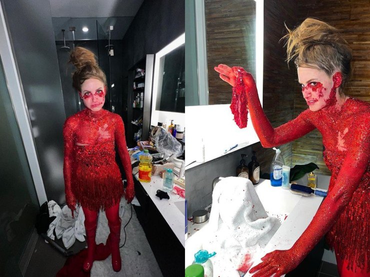 На самом мероприятии Калил смогла удивить всех этим ярким образом, но снять костюм было невероятно трудно. В ролике в соцсети TikTok блогерша поделилась своими ощущениями и процессом очищения кожи после съемки. Она жаловалась на жуткий зуд и боль, которые испытывала при попытке снять камни и клей.