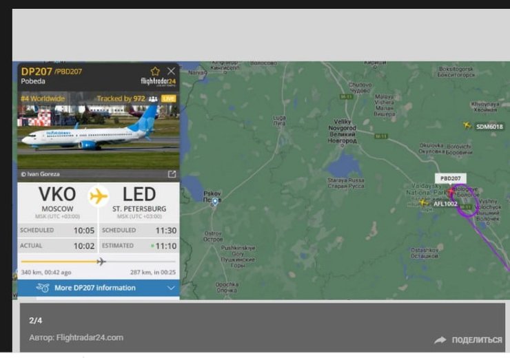 Так, по сообщению росСМИ, рейс "Победы" из Москвы в Санкт-Петербург совершает круги над Валдайским национальным парком. Борты не приближаются ближе 200 километров.