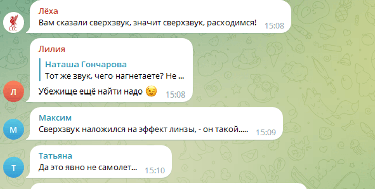Спустя почти час после инцидента губернатор региона Василий Голубев заявил, что "громкий хлопок был слышен при переходе самолета на сверхзвуковой режим полета".