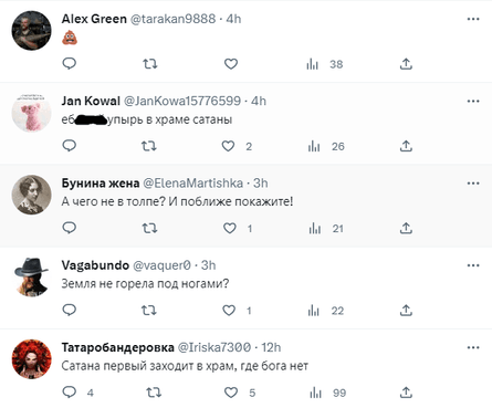 "Культовые сооружения РПЦ давно покинул Бог, сатана первым входит в храм, где Бога нет", — отметили они.