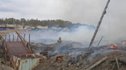 Огонь повредил восемь домов, вспыхнул и деревообрабатывающий цех. Два вертолета и пожарный поезд используются для тушения пожара. В настоящее время всего привлечено 10 единиц транспорта.