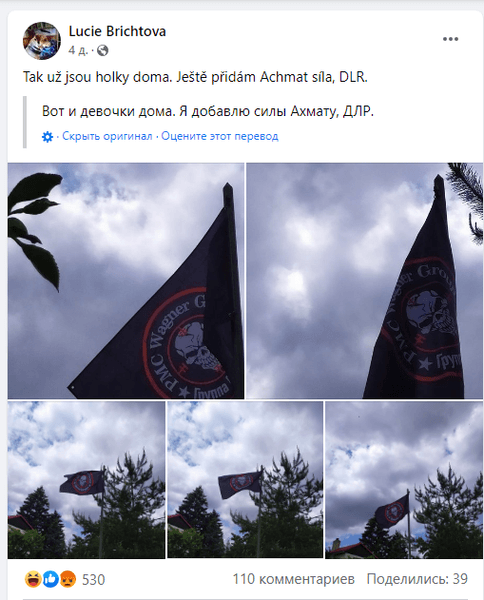 Как отмечается, флаг ЧВК "Вагнер" был поднят на собственном участке чешской гражданкой Люцией Брехтовой. Ее профиль в Facebook, на котором размещены соответствующие фотографии, полон пророссийскими и антиукраинскими публикациями.