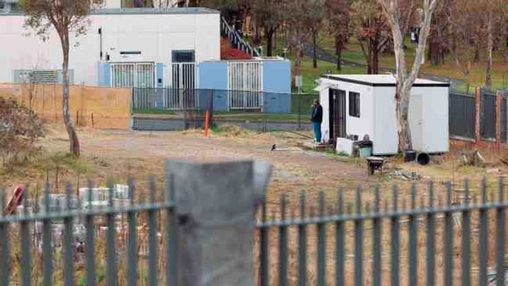 Он находится под пристальным наблюдением австралийской федеральной полиции на участке Ярралумла и время от времени покидает помещение, чтобы выкурить сигарету и забрать продукты.