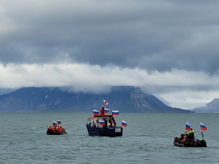 В Генконсульстве РФ парад окрестили "традиционным" и сообщили, что участие в нем приняли: катер генконсульства, самоходная баржа "Пирамида" и катер "Баренцбург" треста "Арктикуголь" и две моторные лодки Российской научной арктической машины.