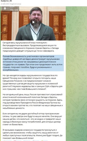 Сам Кадыров тоже завуалировано пытался оправдать незаконные действия своего сына. Он опубликовал пост без прямых комментариев по ситуации в СИЗО Грозного и отметил безнаказанность тех, кто жжет Коран по всему миру.