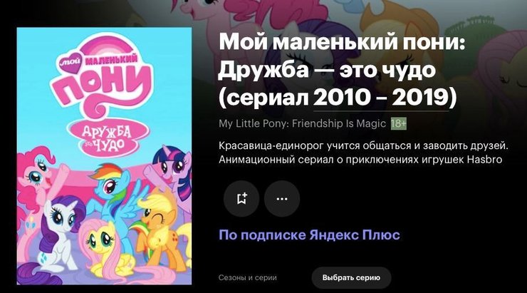 "Онлайн-кинотеатр Кинопоиск HD поставил плашку 18+ на мультфильм My little pony ("Мой маленький пони"). Можно предположить, что плашку поставили из-за пони по имени Rainbow Dash (буквально, Радуга Дэш)", — говорится в сообщении.