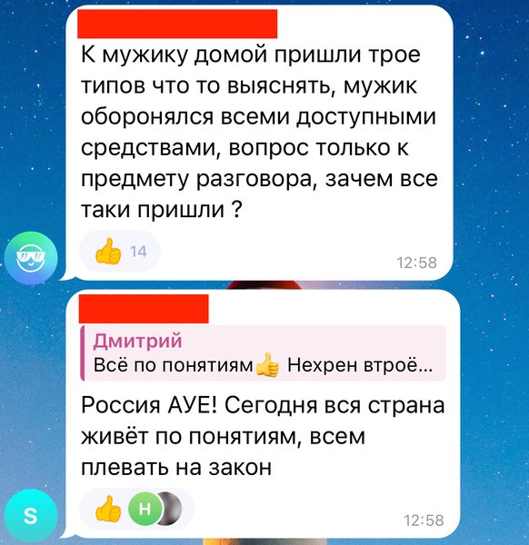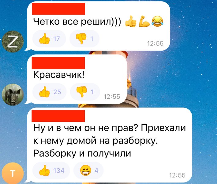 "Ну и в чем он не прав? Приехали к нему домой на разборку. Разборку и получили", — написал один из пользователей.