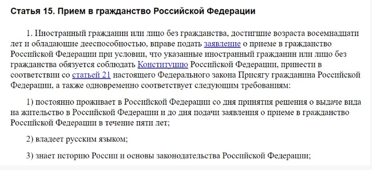 "Гражданам Беларуси для получения российского гражданства вместе с заявлением необходимо предоставить вид на жительство и документ, удостоверяющий личность и гражданство. Гражданам Казахстана и Молдовы к вышеуказанным документам придется предоставить подтверждение знания ими русского языка", — говорится в документе РФ.