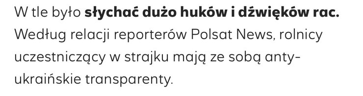 Как добавили в Polsat News, на фоне было слышно много "ударов и звуков сигнальных ракет", а фермеры несли "антиукраинские плакаты".