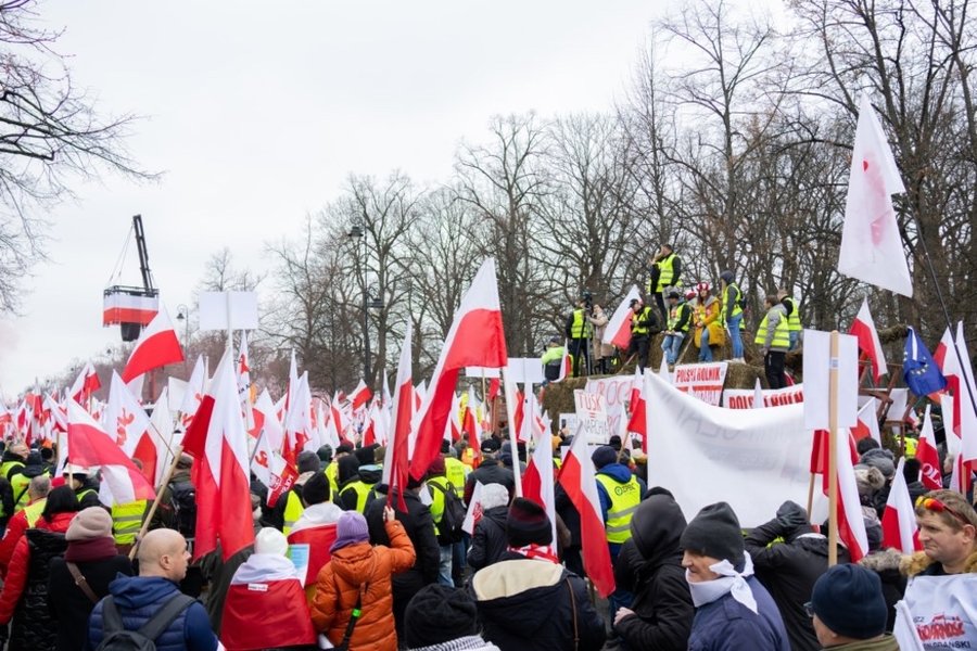 "Мы здесь, чтобы рассказать премьер-министру о том, что нам болит, о чем он должен знать. Зеленый курс, все, что с ним связано, и защита польских границ от наплыва неконтролируемых продуктов из Украины, России и Беларуси. Это то, что нам болит... Этот Зеленый курс — это конец для нас всех. Если правительство не защитит нас, мы пропадем. Польша исчезнет. Мы все объединены вместе. В единстве — сила, мы не позволим разделить фермеров", — сказал один из лидеров протеста во время своего выступления.