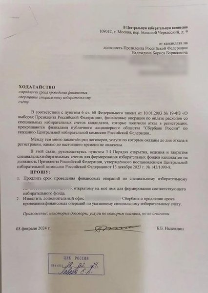 8 февраля в СМИ сообщили, что Борису Надеждину отказали в регистрации в качестве кандидата на пост президента России. Это произошло из-за того, что во время проверки его документов якобы обнаружили ошибки в подписях.