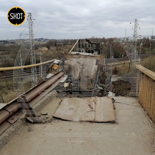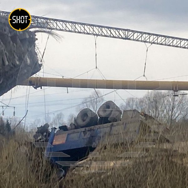СМИ со ссылкой на местных отметили, что обвалились четыре пролета, они проходили над железнодорожными путями Москва — Минск. Также оборвало провода электросетей и повредило газовую трубу. Однако угрозы взрыва якобы нет.