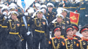 На параде в Москве посетители увидели только одну гусеничную технику — 80-летний танк Т-34. В конце над российской столицей пролетели истребители, разбрызгивая в небе белую, синюю и красную краски — цвета российского флага.