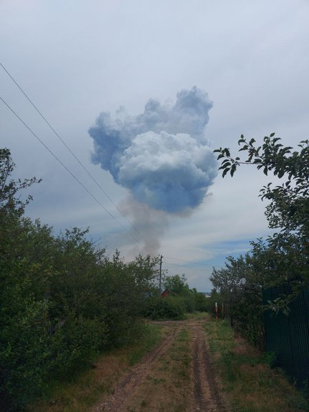 Паблик обнародовал фото и видео пожара. Местные жители сообщили о взрыве и густом дыме над населенным пунктом.