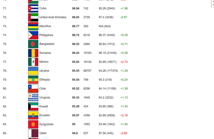 Отмечается, что оно основано на данных 1 393 066 человек по всему миру, которые прошли тот же тест на этом сайте в 2024 году. В 82,45% стран баллы IQ аналогичны показателям предыдущего года. Некоторые страны не были включены из-за небольшого количества данных.
