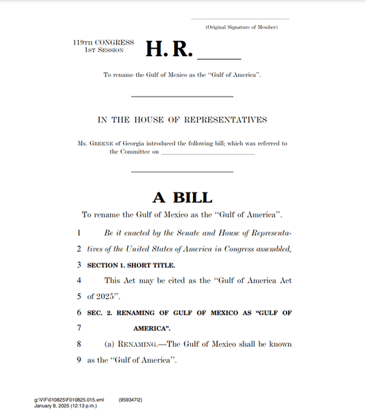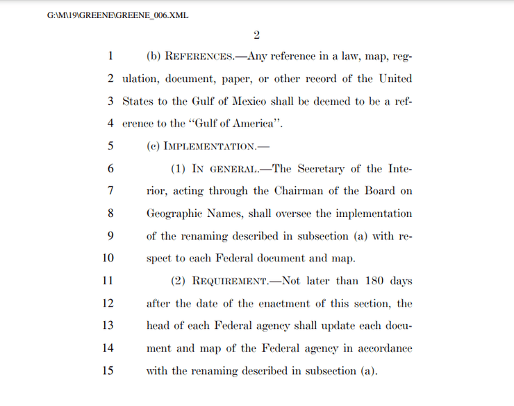 После этого член палаты представителей, республиканец от штата Джорджия Марджори Тейлор Грин заявила, что планирует внести законопроект об изменении названия Мексиканского залива через Конгресс.