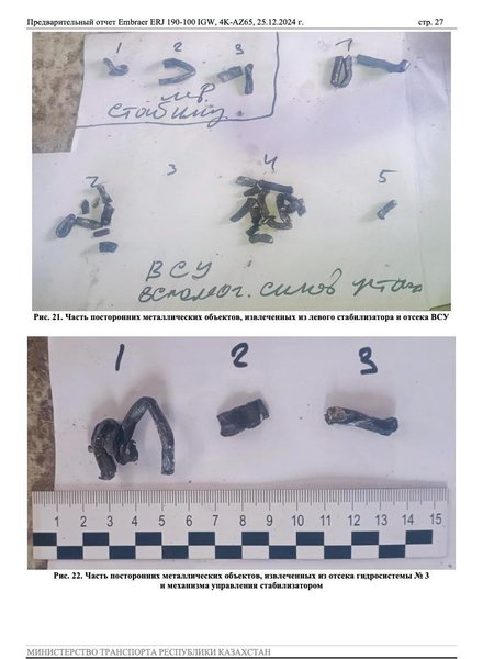 Самолет Embraer E190 авиакомпании Azerbaijan Airlines повредили металлические частицы, схожие с поражающими элементами ракеты ПВО. Осколки направили на экспертизу, власти Казахстана воздерживаются от выводов.
