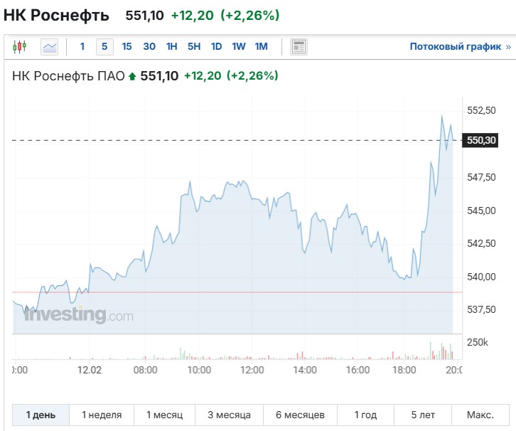 Если поинтересоваться деталями изменений котировки, то можно увидеть стремительный рост в районе 19 час. 12 февраля. Именно в то время появилось сообщение Дональда Трампа о телефонном разговоре. Также видно, что этого события ожидали уже с 12 ч. — видно, как графики начинают "ползти" вверх.
