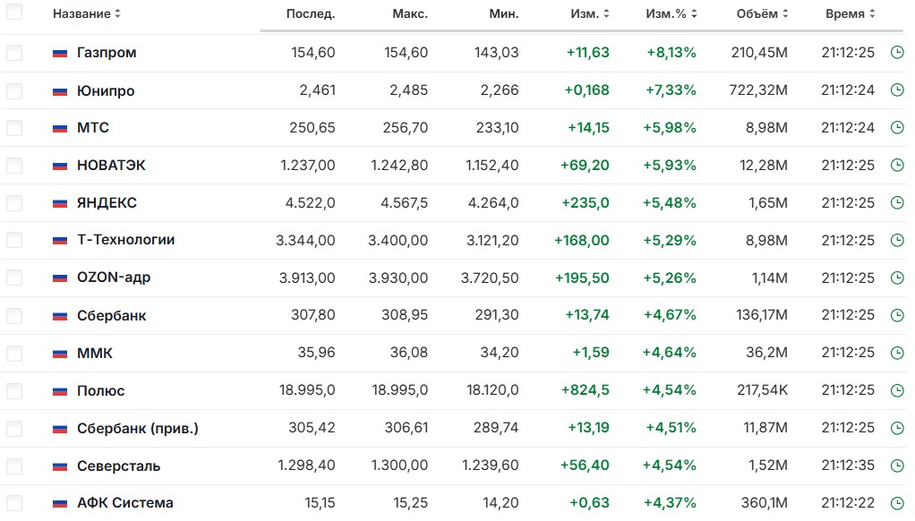 Акции компаний РФ выросли после разговора Трампа и Путина: что произошло на бирже