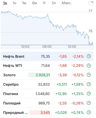 На портале также есть данные о цене на нефть — она начала падать, начиная с 6 ч. 12 февраля. Курс валют отреагировал не слишком сильно, но изменения начались около 12 часов.