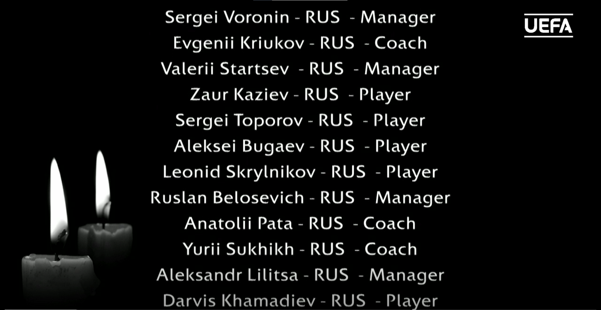 "УЕФА и ассоциации-члены выражают искренние соболезнования УАФ и всем тем в Украине, кто потерял близких", — говорилось в тексте к перечню умерших украинцев.