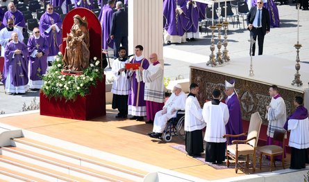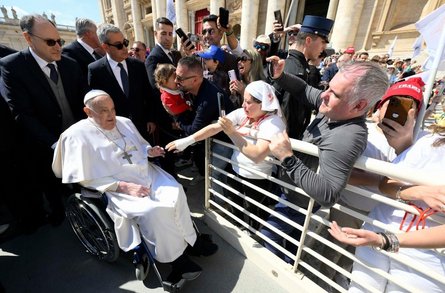 Папа Франциск впервые появился на публике после выписки из больницы две недели назад после лечения двусторонней пневмонии. В воскресенье 6 апреля он выехал на площадь Святого Петра в Ватикане в инвалидном кресле, чтобы поприветствовать верующих.