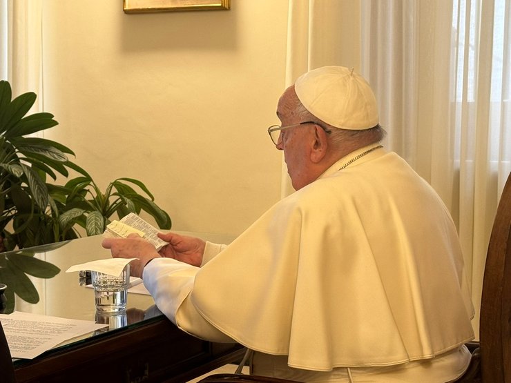 В апреле 2024 года Папа Римский назвал Украину "замученной" и показал верующим экземпляр Нового Завета и набор четки, которые принадлежали убитому 23-летнему украинскому военному.