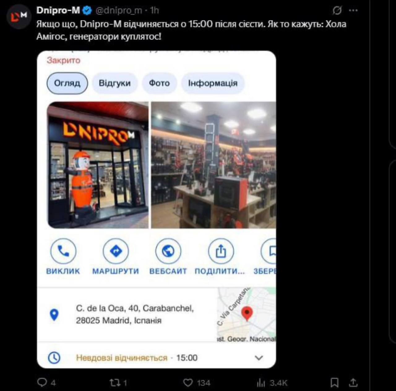 В частности, магазин по продаже различных инструментов отметил, что открывается после сиесты.