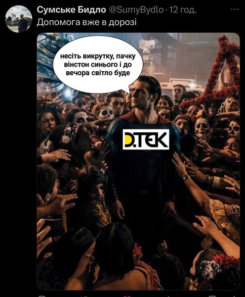 Более того, пользователи сети вспомнили резкие реакции украинцев на блэкауты и представили, что теперь такие фразы звучат в Европе.