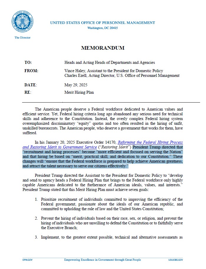 Указы Трампа — документ о найме на работу в федеральное правительство США