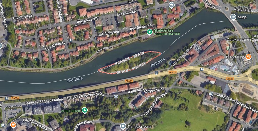 Остров Фазанов — необитаемый участок длиной 660 футов на реке Бидасоа. Проходящая дважды в год передача власти, сопровождаемая официальным военным парадом, предусмотрена Пиренейским договором.