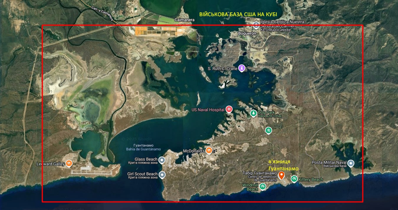 Тюрьма Гуантанамо — лагерь Guantanamo Bay detention camp, в котором с 2002 года удерживали людей, подозреваемых в терроризме и других преступлениях против США. В тюрьме находилось максимум 800 человек и условия пребывания вызывали обеспокоенность у общественности, летом 2023 года писало "Радіо Свобода" со ссылкой на отчет ООН. Лагерь расположен на территории военно-морской базы США (Guantanamo Bay Naval Base) на юге Кубы. Площадь военной базы — около 117 кв. км.