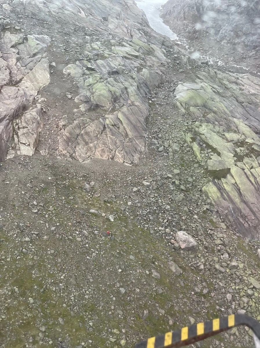 Журналист Алек Лун, который пишет об экологии, несколько дней слышал, как над его головой летает вертолет, но не мог пошевелиться, так как сломал бедренную кость, упав со скалы в национальном парке Фолгефонна, где находятся три гигантских ледника