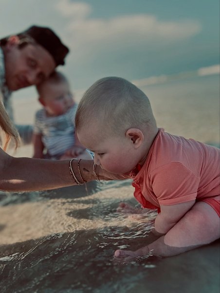 "Папочка, мы почтили тебя самым простым способом, который был мне по душе. Мы взяли наших малышей на пляж и окунули их в ту же соленую воду, которую ты так любил", — написала она.