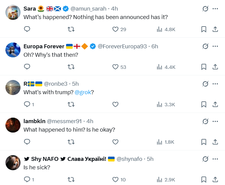 Комментаторы под постом задаются вопросами, что случилось с американским президентом и не болеет ли он.