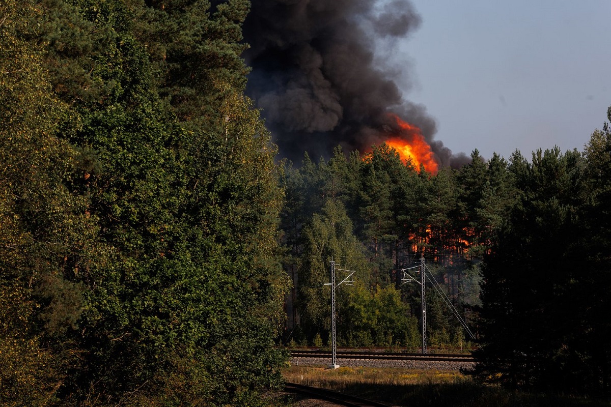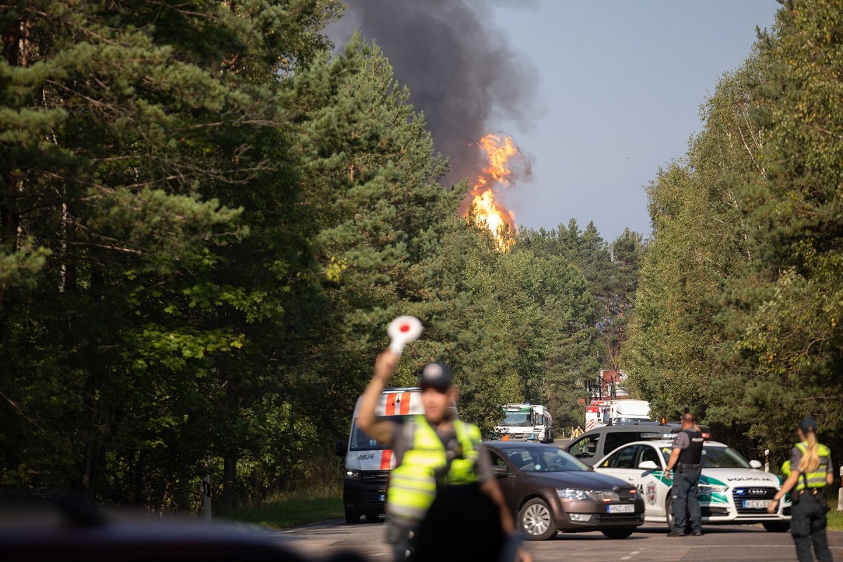 Первый взрыв прозвучал около 10 утра 10 сентября, очевидцы сообщают, что слышали взрывы и после полудня. Дорога рядом с железной дорогой перекрыта, на фото видно, что над деревьями поднимается зарево и черный дым, пишет lrytas.