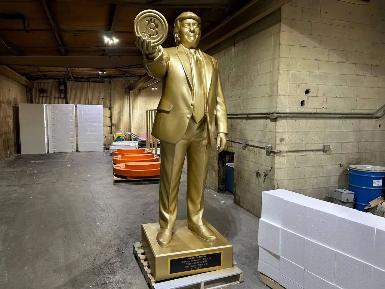 Члены группы заявили, что статуя отдает дань уважения открытой поддержке Трампом криптовалюты.