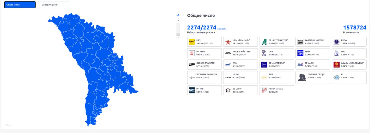 В целом результаты парламентских выборов в Молдове выглядят так: