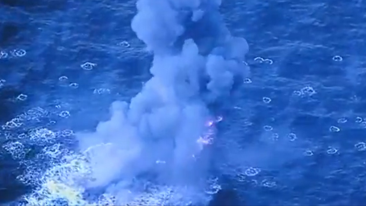 На видеозаписи удара, опубликованного в интернете, видно, как небольшая лодка движется в открытом море, а потом взрывается. Когда дым от взрыва рассеивается, видно, как лодка, объятая пламенем, дрейфует по воде.