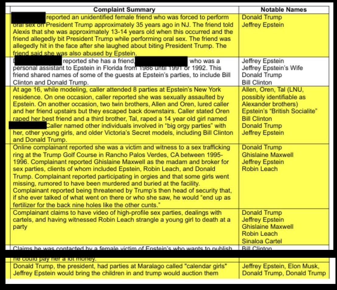 Пока неясно, сколько из недавно рассекреченных файлов содержат упоминания о Трампе. Те журналисты, что уже начали изучать файлы, говорят, что президент США упоминается там "тысячи раз" и в них содержатся обвинения в адрес Трампа в изнасиловании 13-летней девочки, ее показания пересказло третье лицо. \Также утверждается, что Эпштейн поставлял девушек для "аукционов" в Мар-а-Лаго.