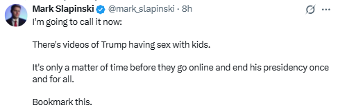 На этом Слапински не остановился и снова написал, что якобы существуют видеозаписи, где президент США делает с детьми далеко не детские вещи.