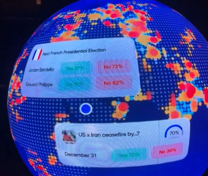"Прекращение огня между США и Ираном к… 31 декабря?" — гласило одно всплывающее окно. "Победитель чемпионата мира по футболу 2026 года", — гласило другое; 15 процентов предположили, что это будет Испания, а 13 процентов — Англия.