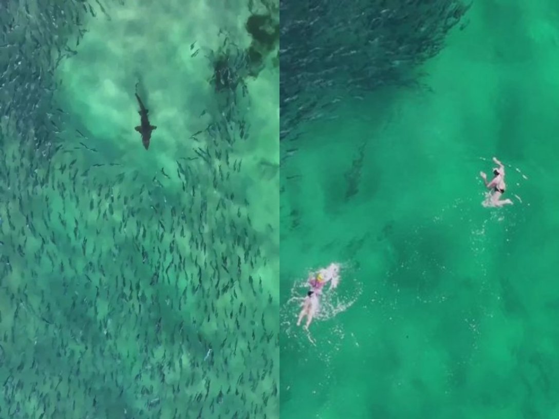 Ужасающие кадры с беспилотника показывают момент, когда пловцы поняли, что под ними притаилась хищница