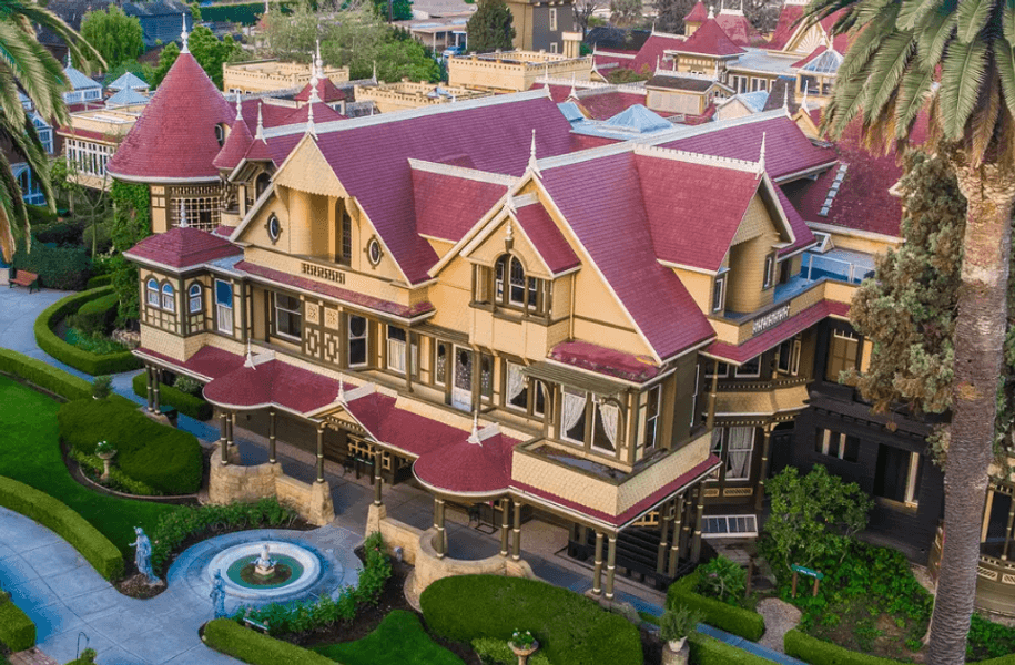 Этот огромный особняк в Сан-Хосе, Калифорния, воплощает в себе историю, связанную с насилием и смертью, и его размеры в основном объясняются неослабевающей чувством вины Сары Винчестер.