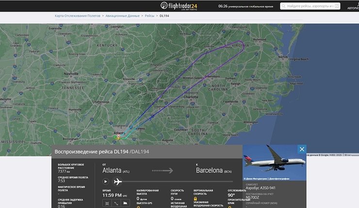 Пилот доложил наземным службам о возвращении в аэропорт Атланты и развернул самолет, пока тот находился над материком.