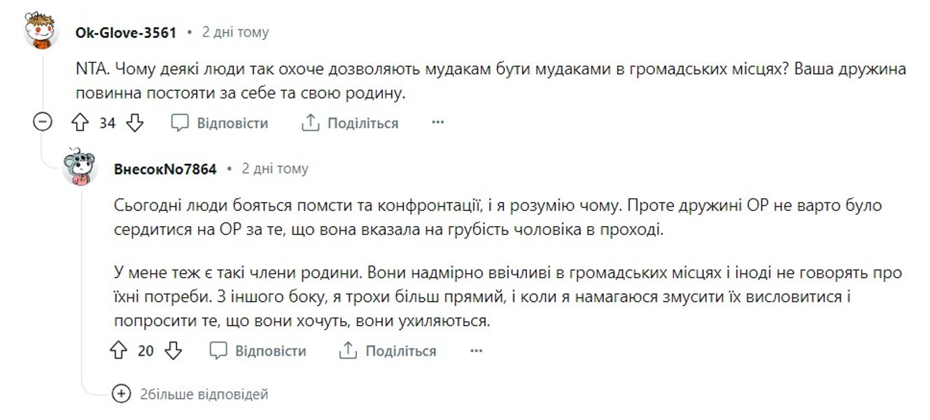 Между тем жена "разозлилась" за то, что прозвучало замечание постороннему человеку.
