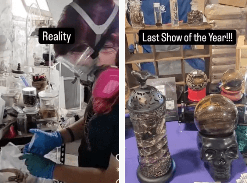 Цены на ее изделия колеблются от 25 фунтов стерлингов ($30) до 400 фунтов стерлингов ($500), в зависимости от изделия, но сообразительный автор уже сделала тысячи продаж и получила множество 5-звездочных отзывов. Среди изделий — маленькие животные, набитые внутри "глобусов", лампочка-угорь, мумифицированная птица какаду и даже пустая бутылка из-под ликера, в которой теперь обитает мертвый ковровый питон.